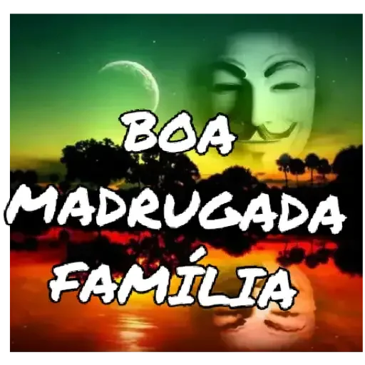 Uma lua crescente ao pôr do sol com uma máscara sorridente ao fundo e o texto "BOA MADRUGADA FAMÍLIA" em destaque.