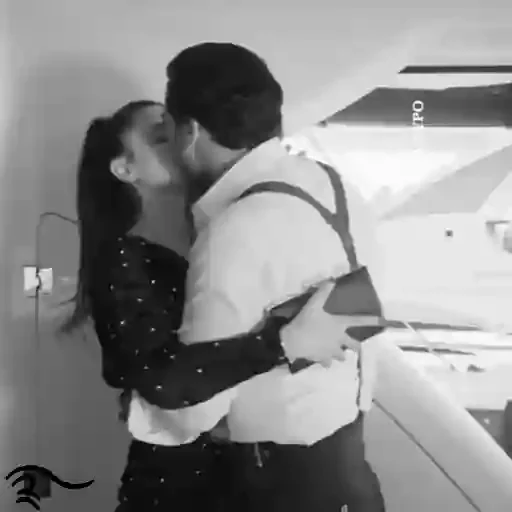Um homem beijando uma pessoa, ambos com expressão de intimidade. A imagem é preto e branco.