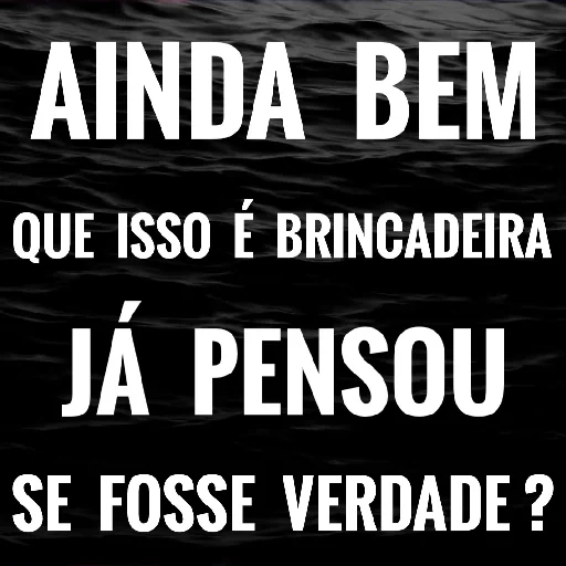 Um fundo preto com ondas de água escuras. Sobreposto, texto branco em quatro linhas: 'AINDA BEM', 'QUE ISSO É BRINCADEIRA', 'JÁ PENSOU', 'SE FOSSE VERDADE?'