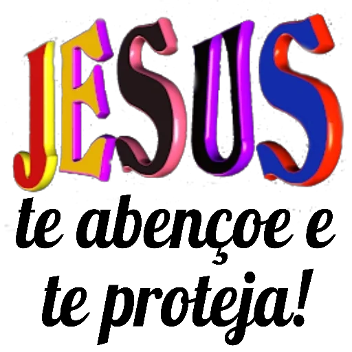 Letras coloridas formando a palavra 'JESUS' e o texto 'te abençoe e te proteja!' em um fundo preto.