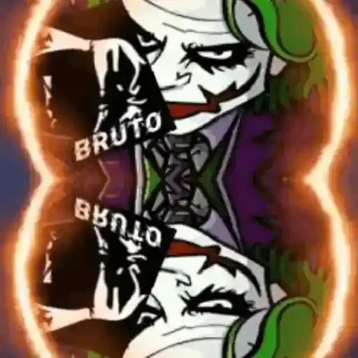 O Coringa com expressão zangada, mãos cobrindo a boca e o texto 'BRUTO' sobreposto. Fundo escuro com contorno laranja.