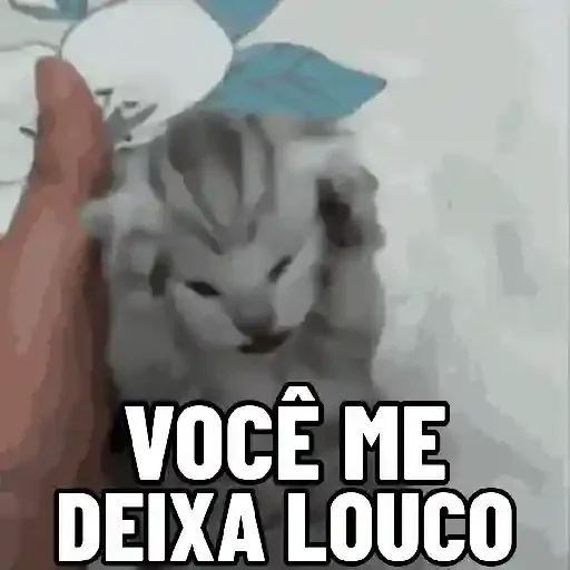 Um cachorrinho cinza com expressão fofa é mostrado ao lado de uma mão humana, com o texto "VOCÊ ME DEIXA LOUCO" sobreposto em branco.