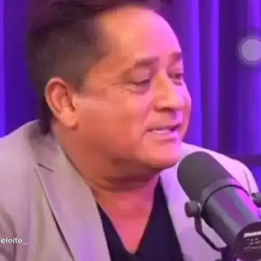 Homem mais velho com cabelo grisalho e expressão de surpresa ou indignação, vestindo um blazer azul.