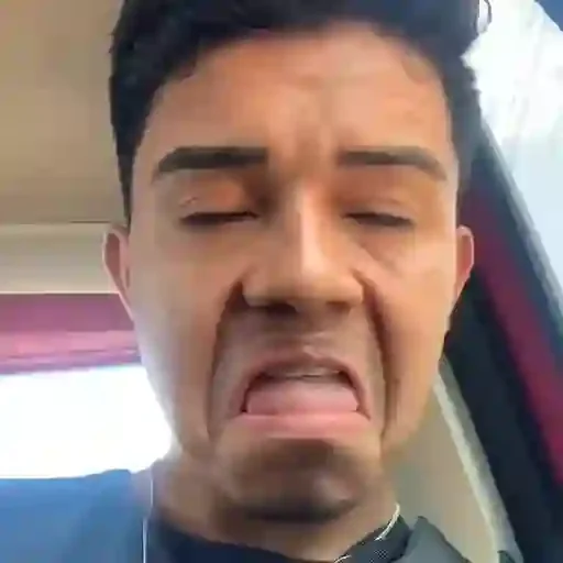 Rosto de um homem com expressão de surpresa ou choque, com os olhos semicerrados e a boca aberta.