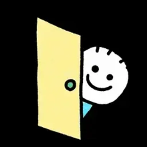 Um rosto sorridente espiando por trás de uma porta amarela.
