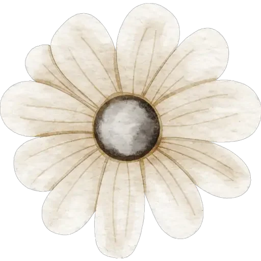 Uma flor branca com centro cinza e detalhes em tons de bege.