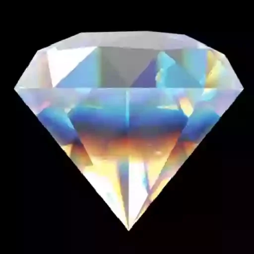 Um diamante brilhante com reflexos de luz em tons de azul, amarelo e laranja.