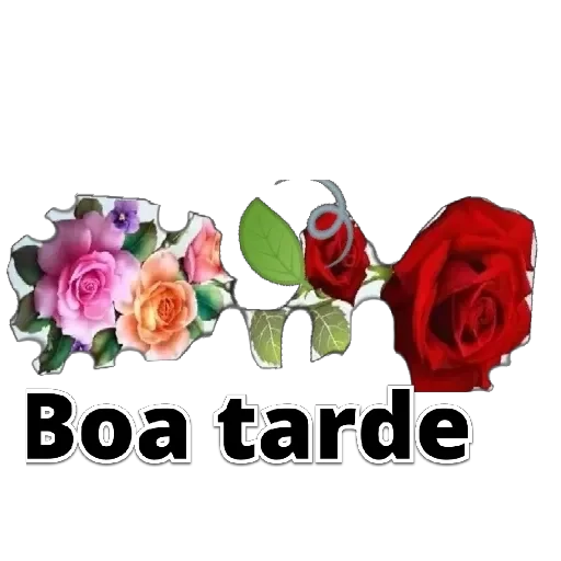 Um ramo de rosas coloridas com as palavras 'Boa tarde' embaixo.