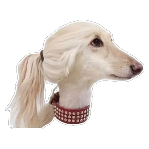 Cabeça de um cão de pelagem branca com uma coleira vermelha e branca.