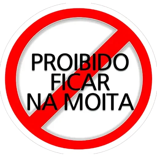Um sinal de proibição com um círculo vermelho e uma linha diagonal, contendo o texto 'PROIBIDO FICAR NA MOITA' em letras pretas.
