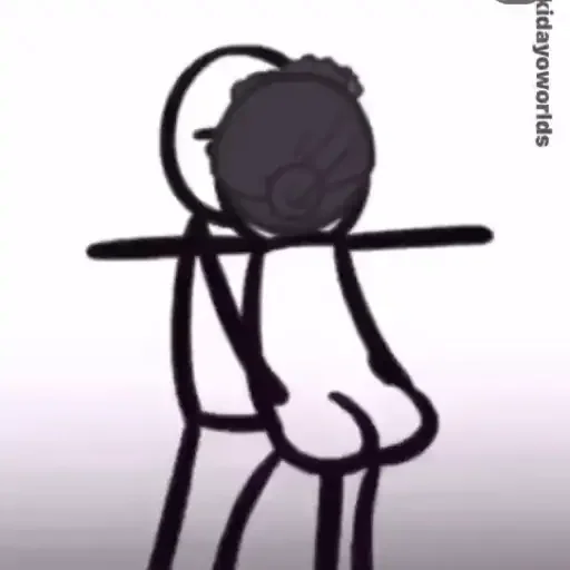 Um desenho simples de um personagem com corpo oval e pernas finas, parecendo impaciente ou ansioso, com os braços…