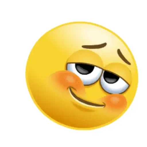 Um emoji de rosto amarelo com expressão tímida, bochechas rosadas e sobrancelhas franzidas, parecendo envergonhado ou com vergonha.