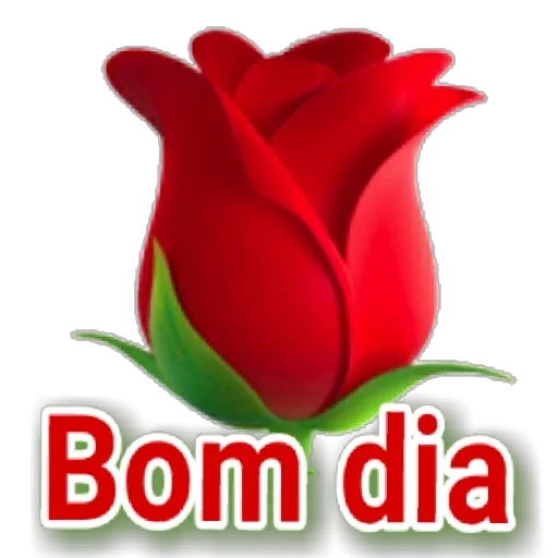 Uma rosa vermelha com folhas verdes e o texto 'Bom dia' em letras vermelhas.