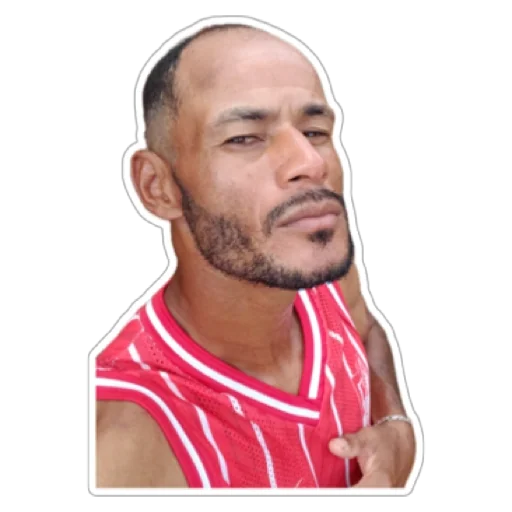 Homem com careca e barba, vestindo uma camisa vermelha listrada, fazendo um gesto com a mão.