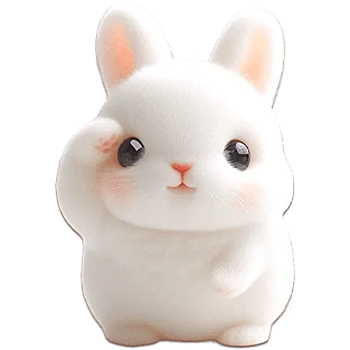 Um coelho branco fofinho com olhos grandes e orelhas rosadas, fazendo um gesto de vergonha ou surpresa com a pata na face.