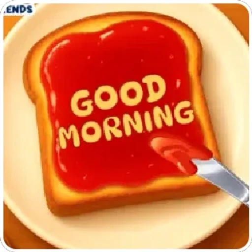 Uma fatia de pão com geleia vermelha e a mensagem 'GOOD MORNING' escrita em amarelo.