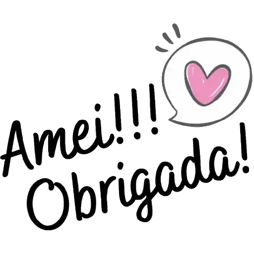 Um coração rosa dentro de um balão de fala com o texto 'Amei!!! Obrigada!'