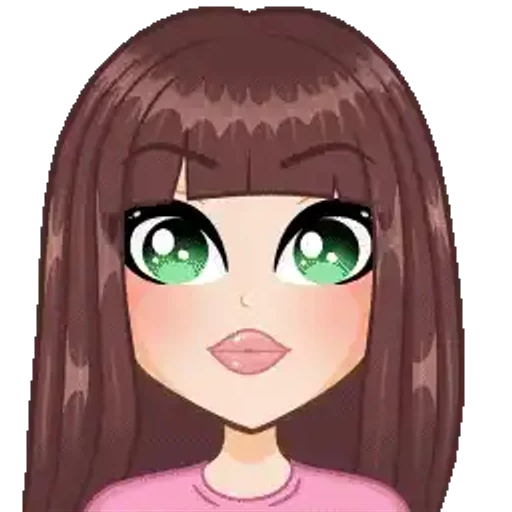 Uma garota de olhos verdes e cabelos castanhos com um sorriso tímido, vestindo uma blusa rosa.