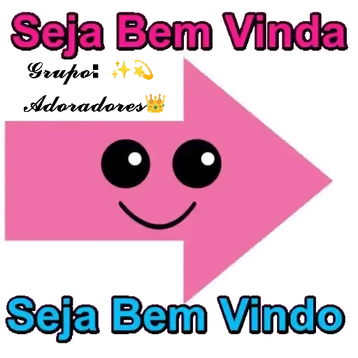 Um sorriso animado em um triângulo rosa com as frases 'Seja Bem Vinda' e 'Seja Bem Vindo' e o texto 'Grupo: Adoradores'.
