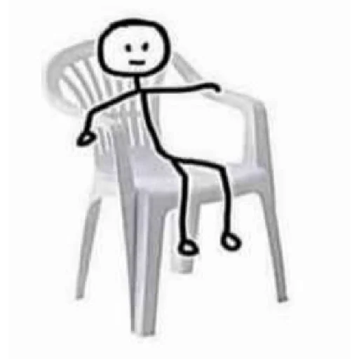 Um desenho de uma pessoa sentada em uma cadeira plástica com expressão neutra.
