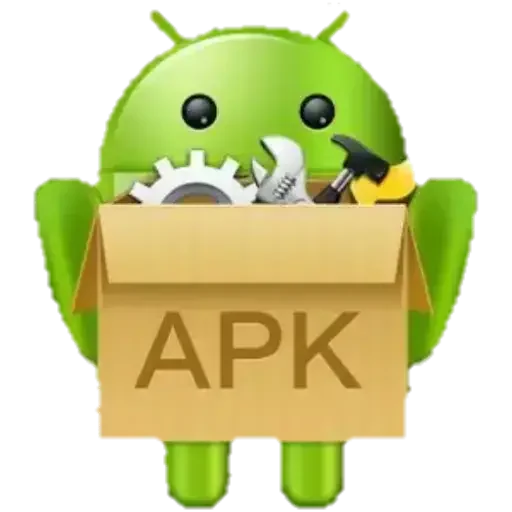 O boneco verde do Android segurando uma caixa com ferramentas e o texto 'APK'