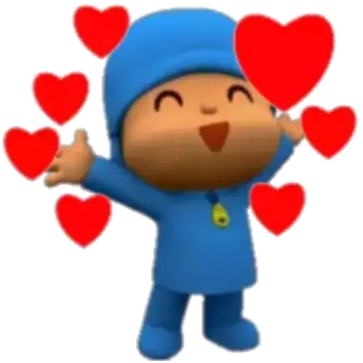 Um menino de olhos fechados e sorriso largo, com as mãos abertas e corações vermelhos ao redor.