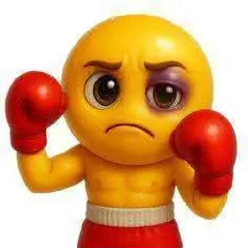 Um emoji de uma careta de raiva com luvas de boxe e calções vermelhos, com um olho roxo.