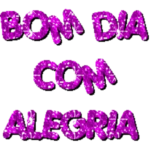 Um texto em letras maiúsculas, coloridas com tons de roxo e rosa, que diz 'BOM DIA COM ALEGRIA'.