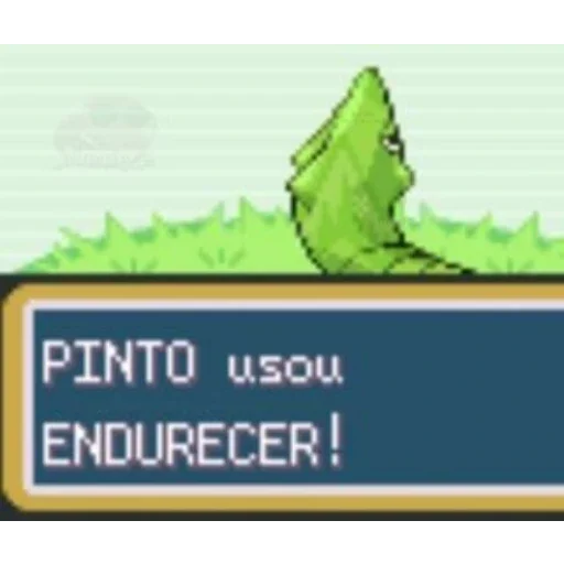 Um Pokémon verde, parecido com uma planta, ao lado de uma caixa de diálogo que diz 'PINTO usou ENDURECER!'