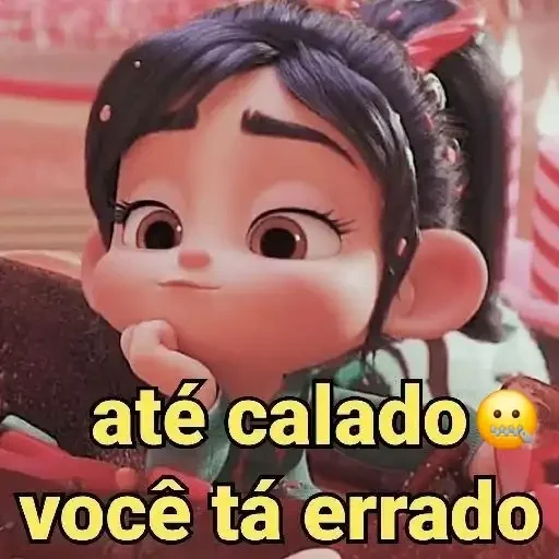 Personagem de desenho animado com expressão pensativa e texto "até calado você tá errado" em amarelo.