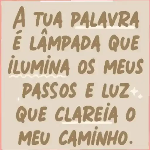 Uma figurinha com texto em português que diz 'À TUA PALAVRA É LÂMPADA QUE ILUMINA OS MEUS PASSOS E LUZ QUE CLAREIA O MEU CAMINHO.' A escrita é em um estilo manuscrito, com letras marrons em um fundo bege.