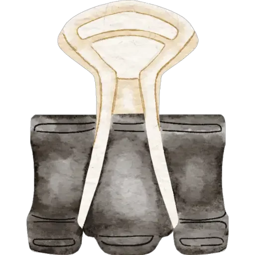 Ilustração de um clipe de escritório prateado com uma parte branca interna, visto de frente em um fundo branco.