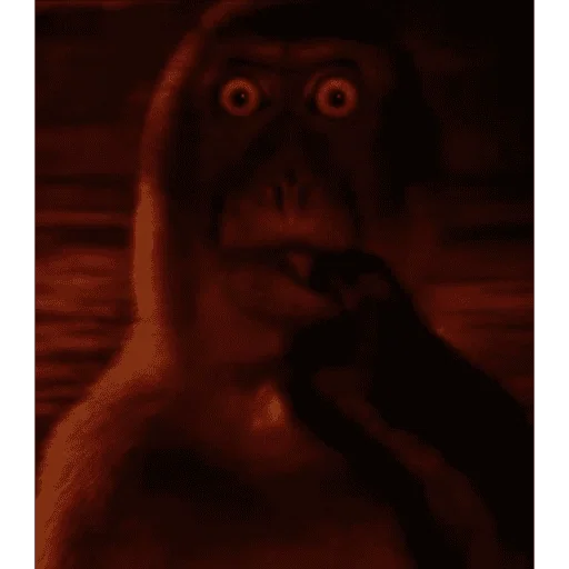 Macaco com expressão séria, mãos posicionadas ao redor da cabeça como se estivesse com dor de cabeça, fundo cinza.
