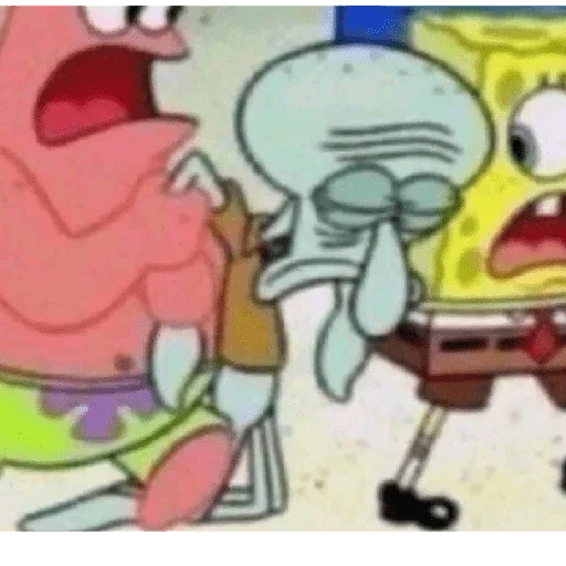 Patrick Star e Bob Esponja com óculos e expressões engraçadas em um cenário subaquático.