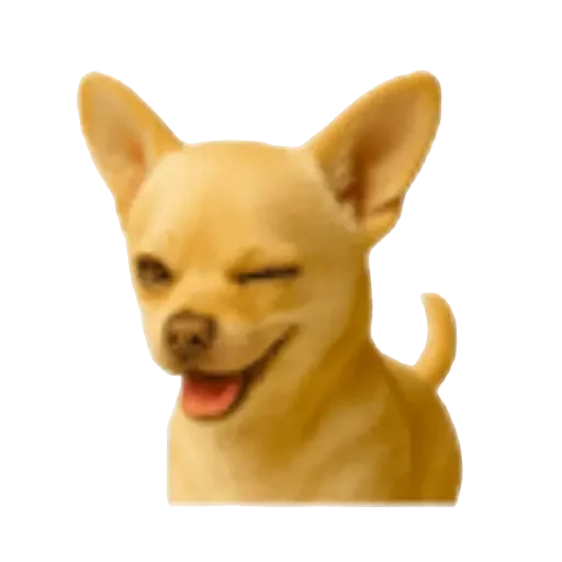 Cachorro Chihuahua com os olhos fechados e a língua para fora, parecendo sorrir.