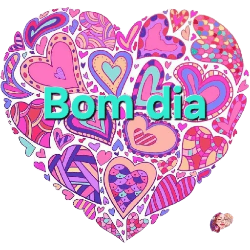 Um coração grande cheio de corações coloridos e pequenos em rosa, roxo, azul e laranja, com o texto "Bom dia" no centro.