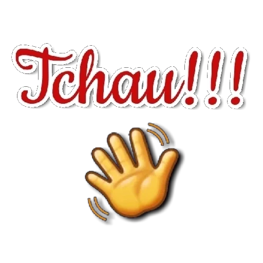 Uma mão amarela com os dedos abertos e linhas de movimento ao redor, com o texto 'Tchau!!!' em vermelho acima.