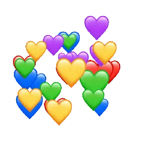 Um conjunto de corações coloridos, incluindo tons de amarelo, verde, azul, vermelho e roxo, dispostos de forma alegre e decorativa.