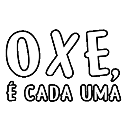 Um desenho simples com as palavras 'OXE, É CADA UMA' em letras grandes e bold, com contorno preto.
