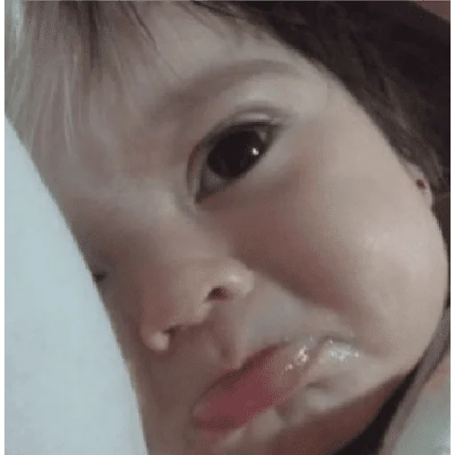 Rosto de uma menina com expressão surpresa ou assustada, com olhos arregalados e boca ligeiramente aberta.