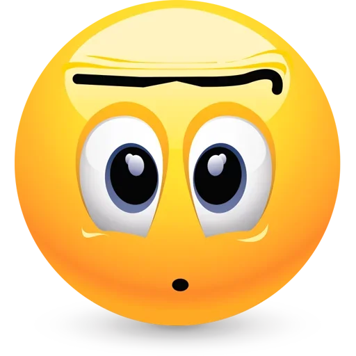 Rosto de emoji amarelo com expressão de preocupação ou confusão, olhos arregalados e sobrancelhas franzidas.