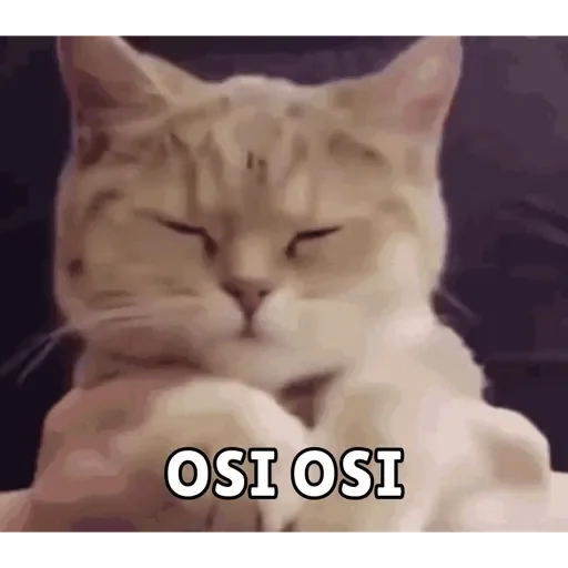 Gato com expressão séria e olhos semicerrados, com as patas cruzadas. Abaixo dele, está escrito 'OSI OSI'.