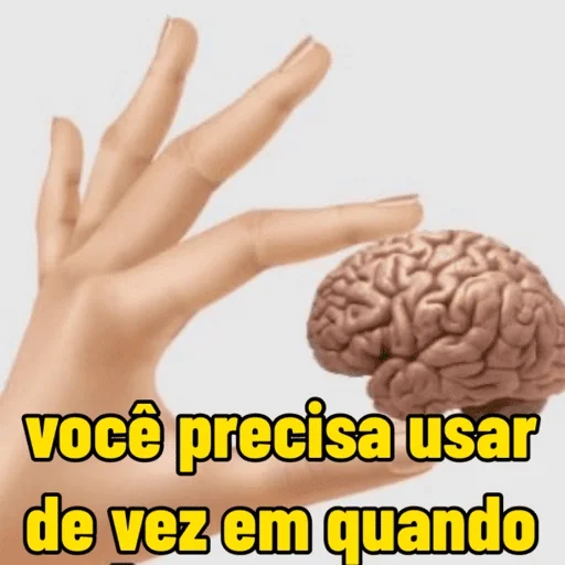 Uma mão segurando um cérebro com a frase 'você precisa usar de vez em quando' em amarelo.
