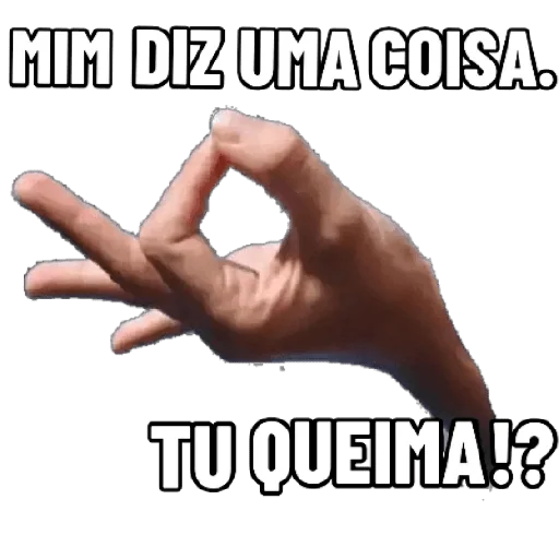 Mão fazendo gesto de 'OK' com texto 'MIM DIZ UMA COISA. TU QUEIMA!'
