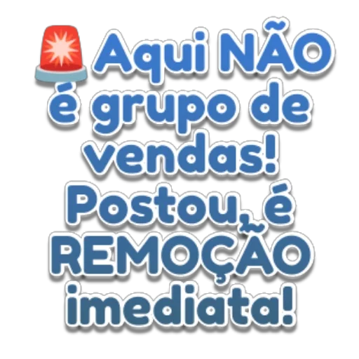 Um alerta vermelho com um símbolo de estrela e o texto "Aqui NÃO é grupo de vendas! Postou é REMOÇÃO imediata!" em azul.