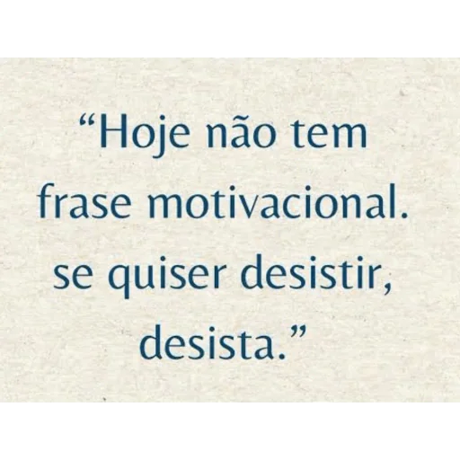 Uma citação em azul sobre fundo bege: 'Hoje não tem frase motivacional. se quiser desistir, desista.'