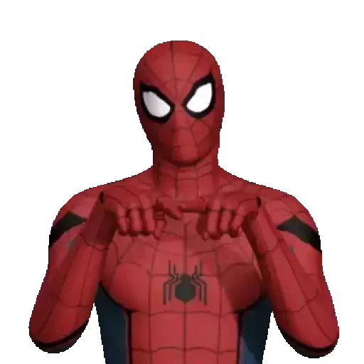 Homem-Aranha usando um celular, com expressão séria e olhos arregalados, em um fundo branco.