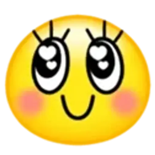 Rosto de emoji amarelo com olhos grandes e coração nos olhos, bochechas rosadas e sorriso.