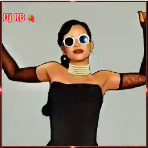 Uma mulher com óculos de sol brancos e um vestido preto, com os braços abertos e o texto 'DJ RB' no canto superior esquerdo.