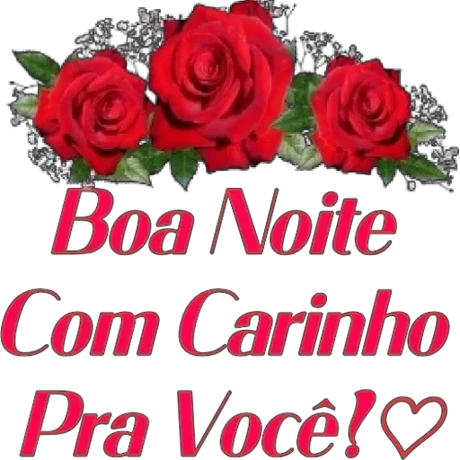 Três rosas vermelhas com folhagem verde e flores brancas ao fundo, com o texto 'Boa Noite Com Carinho Pra Você!' em letras vermelhas.